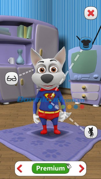 Bạn có thể thỏa sức sáng tạo và thay đổi diện mạo cho Charlie bằng cách chọn lựa những bộ trang phục khác nhau, từ bộ lông mới đến trang phục siêu nhân, người nhện, cùng với nhiều phụ kiện như kính, mũ…