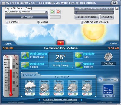 My Free Weather hoạt động như một cửa sổ ảo, mở ra khả năng quan sát thời tiết của mọi thành phố trên toàn cầu. Phần mềm này cung cấp thông tin về điều kiện thời tiết hiện tại, cũng như dự báo chi tiết và chính xác cho từng ngày.
