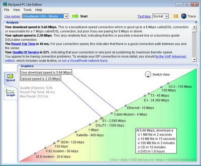 Hơn nữa, tiện ích này còn hỗ trợ việc kiểm tra chất lượng dịch vụ Internet mà bạn đang sử dụng. Ví dụ, nếu kết quả đo được tốc độ tải lên là 5,66 megabits/giây, thì đây là mức chấp nhận được đối với các gói cước có băng thông từ 6mbps đến 7mbps.
