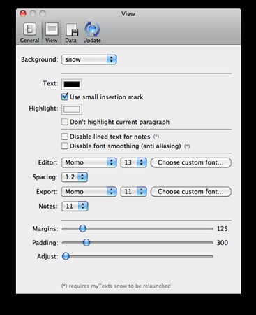 Hiện tại, myTexts snow đã tương thích với hệ điều hành Mac OS X phiên bản 10.6.2 trở lên.