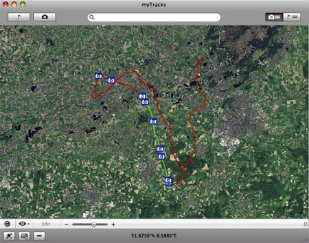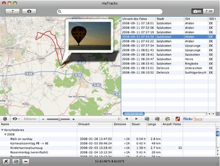Một trong những điểm mạnh của myTracks là khả năng tích hợp và đồng bộ hóa mượt mà với ứng dụng iPhoto ‘09.