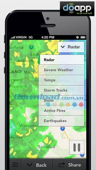 Điểm nổi bật của myWeather for iOS chính là sự tích hợp toàn diện các chức năng quan trọng. Bao gồm thông báo thời tiết chính xác tại vị trí hiện tại, dự báo thời tiết chi tiết và hệ thống radar theo dõi các hiện tượng thời tiết cực đoan như bão, tuyết, cháy rừng và động đất.
