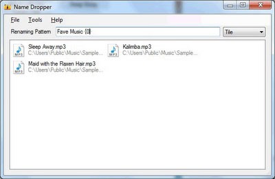 - Bạn có thể dễ dàng kéo các tập tin và thư mục từ Windows Explorer vào danh sách "đặt tên cho tập tin" của cửa sổ Name Dropper. Đồng thời, bạn cũng có thể sắp xếp lại thứ tự các tập tin này bằng cách kéo và thả.