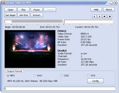 Đa số các phần mềm chuyển đổi video sang MP3 hiện có thường chỉ cho phép xử lý toàn bộ file video, gây bất tiện cho người dùng khi chỉ muốn trích xuất một đoạn âm thanh cụ thể. Ngoại trừ Herosoft Audio 2001/XP, tuy nhiên, ứng dụng này lại không tương thích với chuẩn MP3-Layer 3. Naturpic Video to MP3 2.0 mang đến một giải pháp vượt trội, cho phép chuyển đổi video sang nhiều định dạng như MP3, WAV, OGG, VOX và đặc biệt là khả năng lựa chọn đoạn video cụ thể để chuyển đổi.