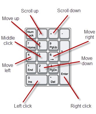 Theo mặc định, các phím điều khiển chuột của NeatMouse được bố trí trên bàn phím số. Các tổ hợp phím mặc định bao gồm: