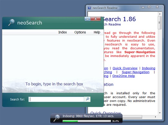 Mặc dù các hệ điều hành hiện nay đã được trang bị sẵn công cụ tìm kiếm, tuy nhiên, việc sử dụng chúng thường dẫn đến tình trạng máy tính hoạt động chậm chạp, gây ra sự bất tiện cho người dùng. neoSearch ra đời như một phương pháp tìm kiếm mới, một ứng dụng nhỏ gọn giúp bạn dễ dàng quản lý các tập tin và thư mục trên máy tính.