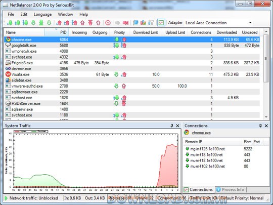 Bên cạnh đó, NetBalancer còn cung cấp khả năng theo dõi chi tiết lượng dữ liệu mà mỗi ứng dụng đang sử dụng.