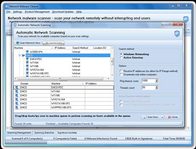 Phần mềm EMCO Network Malware Cleaner có khả năng loại bỏ các phần mềm độc hại như spyware, dialer, worm, trojan, và phần mềm quảng cáo gây hại khỏi hệ thống mạng của bạn.