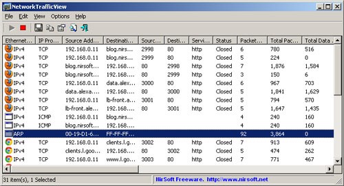 Với mỗi loại số liệu thống kê, NetworkTrafficView 1.10 cung cấp một loạt các thông tin quan trọng, bao gồm: