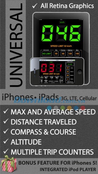Speedometer Free for iOS là một ứng dụng được thiết kế để hỗ trợ người lái xe trên các thiết bị iOS. Ứng dụng này cung cấp các tính năng đo đạc tốc độ, cảnh báo vượt quá giới hạn tốc độ, tích hợp bản đồ, hiển thị thông tin trên HUD (Head-Up Display) và ghi lại dữ liệu hành trình bằng hộp đen GPS thông minh.