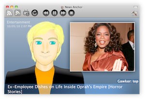 Bạn cho rằng các bản tin truyền hình thường nhàm chán? News Anchor sẽ mở ra một trải nghiệm xem tin tức mới mẻ và hấp dẫn hơn. Khác với các chương trình phát tin tức truyền thống, bạn có thể tự do lựa chọn các mục tin tức yêu thích để nghe thông qua các nguồn RSS/ATOM feed.