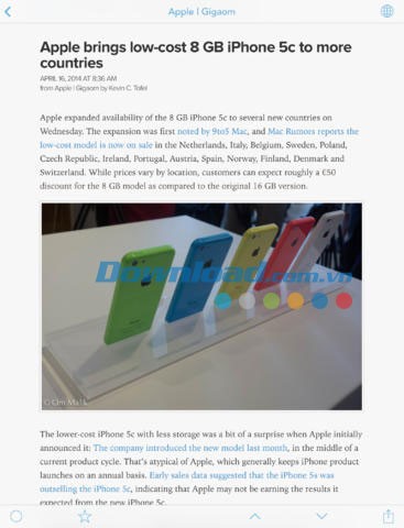 Đọc bài viết ở chế độ toàn màn hình chỉ với một cú chạm vào nội dung.