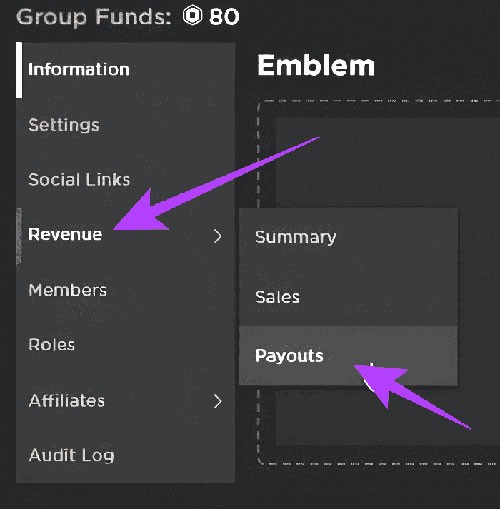 Bước 3: Chọn Revenue và sau đó chọn Payouts.