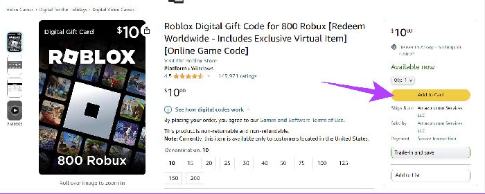 Một phương pháp khác để chuyển Robux cho người khác là thông qua thẻ quà tặng Roblox, có thể mua trực tiếp từ Amazon. Dưới đây là hướng dẫn chi tiết: