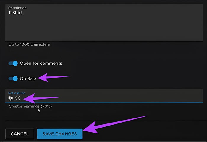 Bước 5: Kích hoạt tùy chọn On Sale, thiết lập mức giá mong muốn và nhấp vào Save Changes.