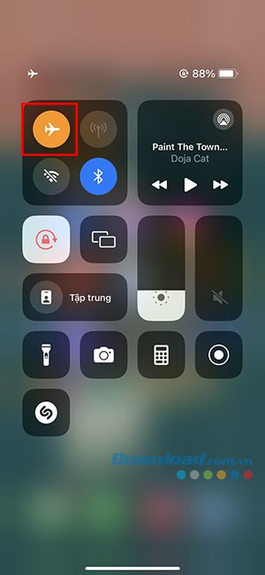 Trong trường hợp sự cố mạng kéo dài, hãy thử kích hoạt Chế độ máy bay rồi tắt đi. Bạn có thể thực hiện việc này bằng cách vuốt từ phía trên màn hình xuống để mở menu cài đặt nhanh và chọn Chế độ máy bay.