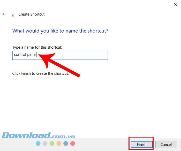 Bước 3: Nhập vào ô tên để đặt tên cho lối tắt, rồi nhấn vào Finish để hoàn tất.