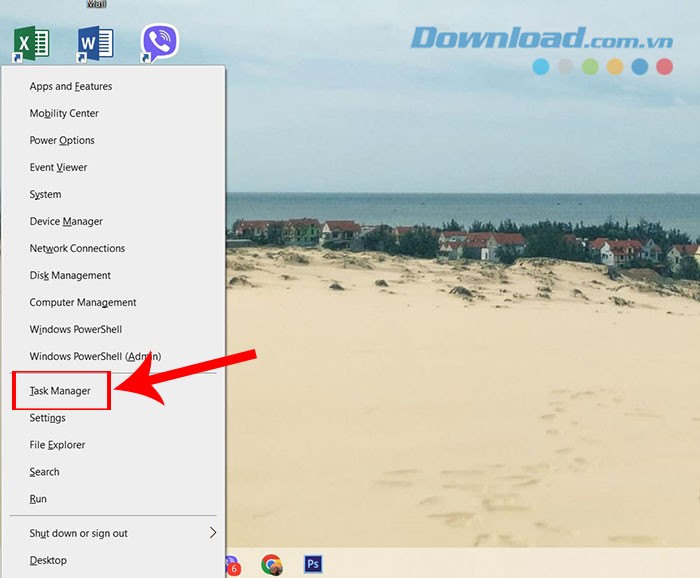 Bước 1: Để mở Power User Menu, hãy đồng thời nhấn phím Windows và X, sau đó chọn Task Manager từ danh sách hiển thị. Một cách khác, bạn có thể sử dụng tổ hợp phím Ctrl + Shift + Escape để khởi động Task Manager.