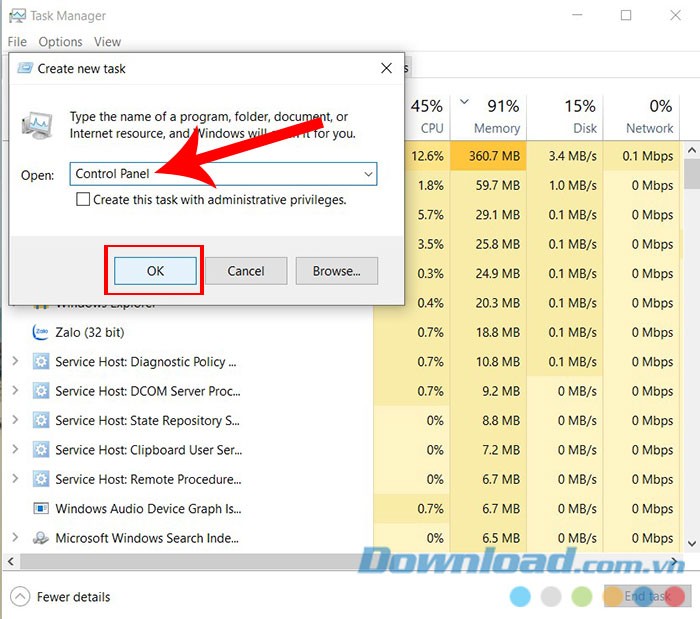 Làm thế nào để truy cập Control Panel từ Task Manager?