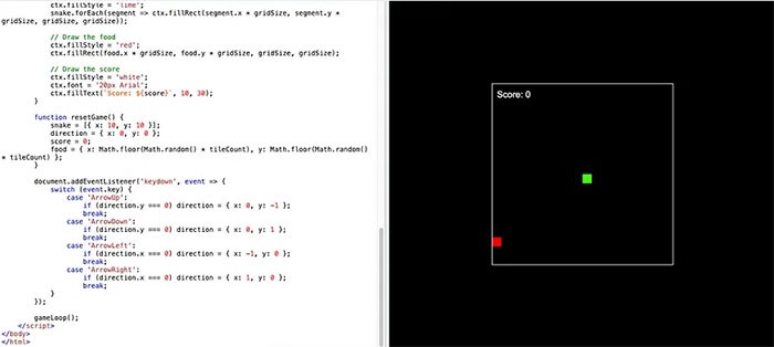 Người dùng có thể tận dụng DeepSeek để viết mã nguồn tương tự như ChatGPT. Ví dụ, yêu cầu AI viết một trò chơi rắn, và kết quả sẽ như sau: