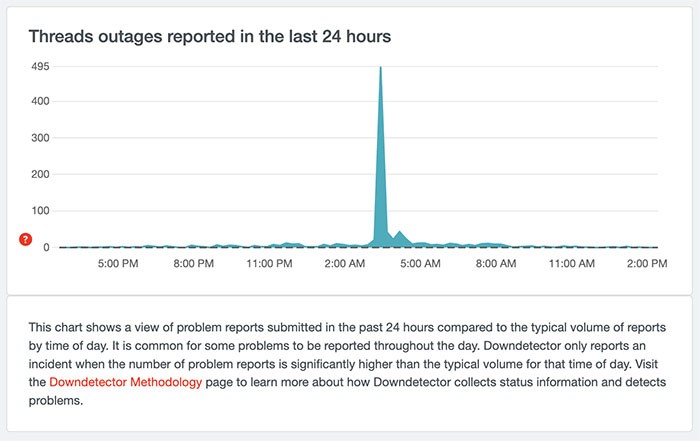 Việc truy cập ứng dụng Threads có thể bị gián đoạn nếu máy chủ gặp sự cố hoặc đang trong quá trình bảo trì định kỳ. Kết nối ổn định với máy chủ là điều kiện tiên quyết để Threads hoạt động, do đó, các vấn đề về máy chủ có thể dẫn đến tình trạng không thể đăng nhập. Người dùng có thể theo dõi tình trạng máy chủ Threads trên trang Downdetector để cập nhật thông tin.