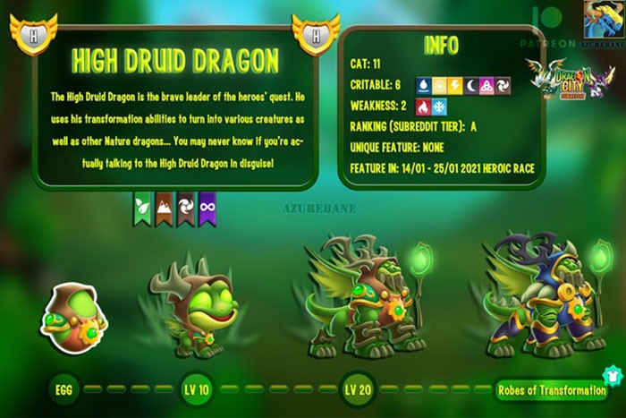 Rồng có thể trải qua các quá trình biến đổi, từ rồng con đến rồng trưởng thành, và thậm chí là rồng huyền thoại. Mỗi giai đoạn biến đổi sẽ mang lại những cải thiện về sức mạnh và kỹ năng.