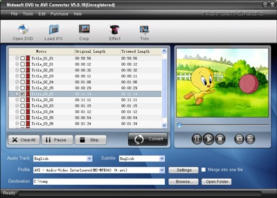 Nidesoft DVD to AVI Converter Platinum là phần mềm chuyên dụng để ripping đĩa DVD và chuyển đổi các loại DVD sang các định dạng phổ biến như AVI, MP4 video, MP3 và WAV âm nhạc.