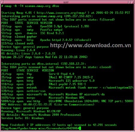 Ngoài ra, Nmap còn cung cấp nhiều thông tin chuyên sâu về các máy tính từ xa. Điều này bao gồm việc xác định hệ điều hành, loại thiết bị, thời điểm hoạt động và phần mềm đang chạy dịch vụ.