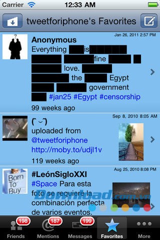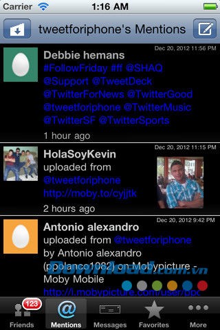 Cho phép tải ảnh lên các dịch vụ như TwitPic , Mobypicture và Twitrpix.