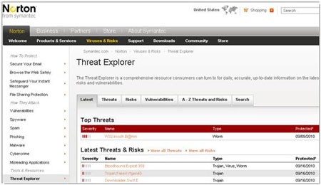 Threat Explorer, một dịch vụ thuộc tập đoàn Symantec, cung cấp cho người dùng những thông tin cập nhật nhất hàng ngày về các đối tượng tiềm ẩn nguy cơ cho hệ thống máy tính.