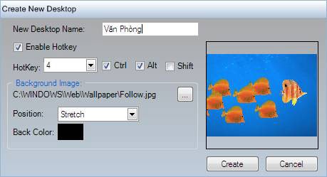 Một cửa sổ đối thoại mang tên Create New Desktop sẽ xuất hiện, cung cấp các tùy chọn để bạn cấu hình: