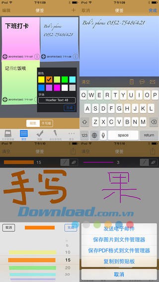 Ghi chú có thể được gửi qua tin nhắn văn bản, email dưới dạng tệp đính kèm hoặc sao chép vào clipboard.