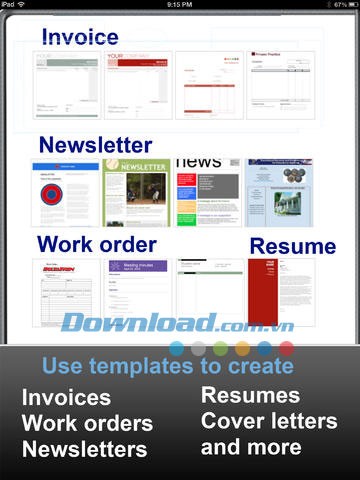Cung cấp các mẫu template đa dạng để tạo hóa đơn, danh sách công việc, thư thông báo, newsletter, sơ yếu lý lịch, thư giới thiệu và nhiều loại tài liệu khác.