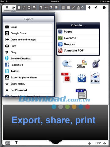 Office Note for iPad cho phép đồng bộ dữ liệu một cách dễ dàng với các dịch vụ lưu trữ đám mây phổ biến như Dropbox , Google Docs và nhiều ứng dụng khác.