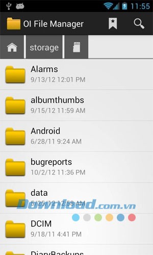 OI File Manager cung cấp cho người dùng khả năng khám phá các tập tin trên thẻ SD, xây dựng danh bạ, cũng như thực hiện các thao tác như đổi tên, sao chép, di chuyển và xóa dữ liệu.