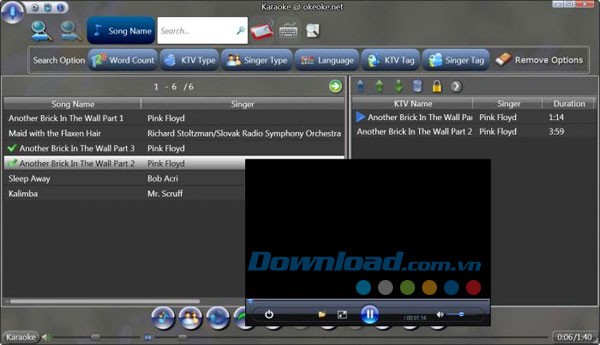 Ứng dụng tận dụng MPlayer để phát các tập tin đa phương tiện. Trong quá trình sử dụng, người dùng có thể lựa chọn các track âm thanh hoặc kênh, đồng thời điều chỉnh âm lượng theo sở thích. MPlayer là một công cụ mạnh mẽ, hỗ trợ hầu hết các định dạng file media và cung cấp nhiều tùy chọn tinh chỉnh, đặc biệt hữu ích cho việc karaoke.