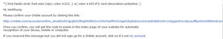 Kiểm tra hộp thư email bạn đã đăng ký và mở email từ Onbile. Kích hoạt liên kết được cung cấp trong email để xác nhận tài khoản.