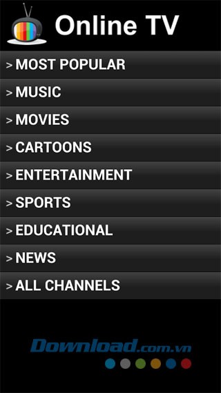 Online TV là phần mềm cho phép bạn xem các chương trình truyền hình trực tiếp trên thiết bị Android của mình, với số lượng kênh hiện có khoảng 100 kênh.