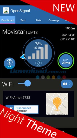 Bản đồ mạng wifi giúp người dùng khám phá các điểm truy cập mạng không dây công cộng (WAP), rất tiện lợi khi đi du lịch hoặc tìm kiếm các quán cà phê cung cấp wifi miễn phí. Thẻ Stats cho phép theo dõi mức sử dụng dữ liệu, giúp bạn tránh vượt quá giới hạn cho phép.