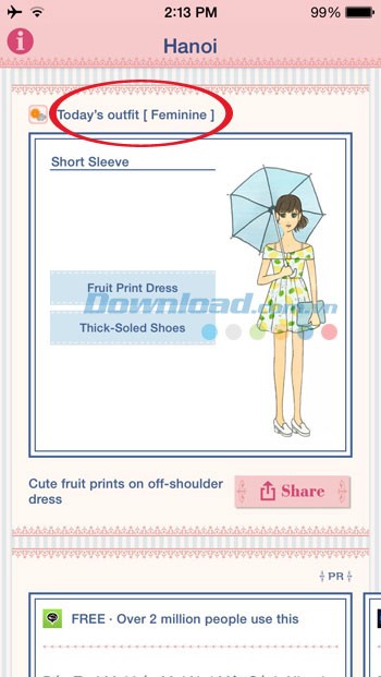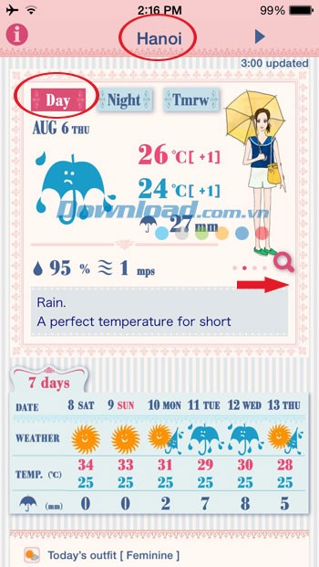 Ứng dụng không chỉ cập nhật tình hình thời tiết mới nhất và dự báo trong vòng 7 ngày tới tại hầu hết các quốc gia và khu vực trên toàn cầu, mà còn đưa ra những gợi ý về trang phục cho phái đẹp.