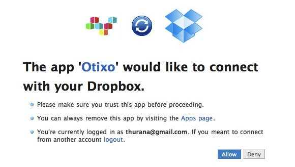 Tiếp theo, bạn cấp quyền kết nối cho Otixo bằng cách nhấn nút Allow.