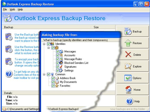 Bạn có thể sao lưu và khôi phục nhiều loại dữ liệu quan trọng như thông tin nhận dạng, quy tắc tin nhắn, tài khoản email, các tùy chỉnh cá nhân, danh sách người gửi bị chặn, chữ ký điện tử, sổ địa chỉ Windows, mục yêu thích và các tập tin trong thư mục My Documents.