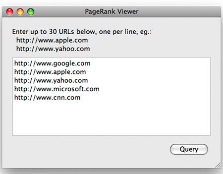 PageRank Viewer for Mac là một tiện ích hệ thống được thiết kế để hỗ trợ người dùng theo dõi và thống kê lượng truy cập của các trang web dựa trên chỉ số Google PageRank.