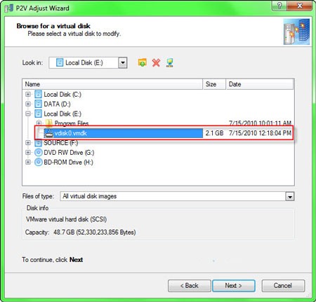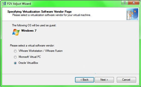 Nếu bạn đã có sẵn file đĩa ảo cho VMware nhưng muốn sử dụng nó trên VirtualBox, tính năng P2V Adjust OS sẽ giúp bạn thực hiện việc này. Ngoài ra, P2V Adjust OS cũng có thể chuyển đổi file đĩa ảo định dạng .vhd trong Windows Vista/7 sang các định dạng khác.