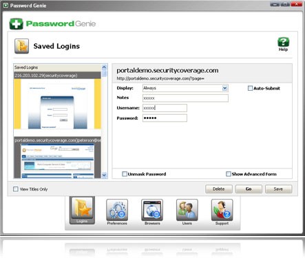 Với Password Genie, người dùng có thể dễ dàng lưu trữ toàn bộ thông tin đăng nhập – bao gồm tên người dùng và mật khẩu – tại một kho dữ liệu được bảo vệ, chỉ có thể truy cập bởi chính chủ sở hữu.