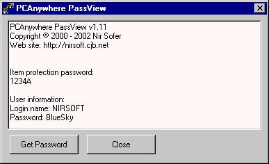 Tiện ích PCAnywhere PassView được thiết kế để giúp bạn dễ dàng khôi phục cả hai loại mật khẩu này. Công cụ này tương thích với các phiên bản của Symantec pcAnywhere từ 7.5, 8.0 cho đến phiên bản 10.0.