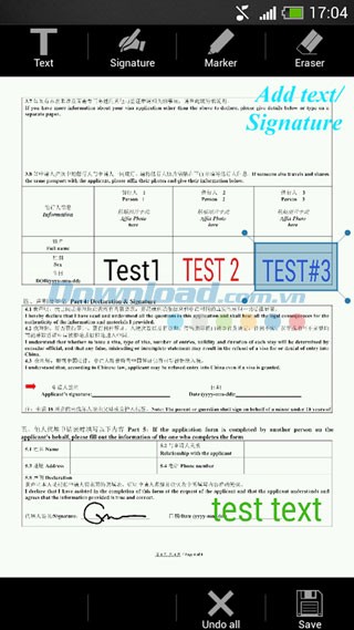 Công cụ chữ ký tích hợp cho phép bạn dễ dàng thêm chữ ký hoặc con dấu vào tài liệu. Bạn có thể lựa chọn chữ ký từ một tệp tin có sẵn hoặc tự vẽ trực tiếp trên màn hình. Ngoài ra, ứng dụng còn cung cấp các công cụ để thêm văn bản, chú thích, xóa bỏ những phần không mong muốn và đánh dấu những nội dung quan trọng.