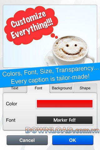 Cung cấp nhiều tùy chọn chỉnh sửa văn bản: màu sắc, hình dạng, phông chữ và kích thước.