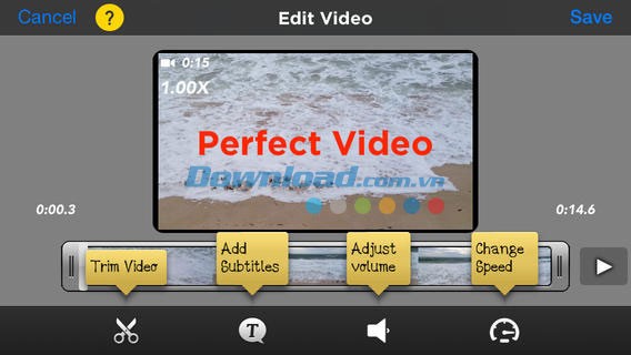Với sự hỗ trợ của Perfect Video Lite for iOS, người dùng có thể dễ dàng cắt ghép, trộn video, thêm phụ đề, chèn ảnh và văn bản minh họa, lựa chọn các hiệu ứng chuyển cảnh, thêm nhạc nền và thậm chí là thu âm giọng nói trực tiếp vào video clip.