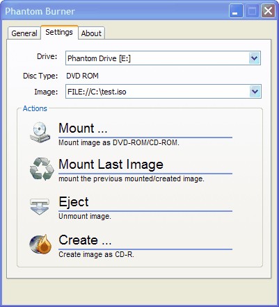 Không chỉ hỗ trợ gắn kết các tập tin ảnh đĩa như CD ảo, DVD hoặc đĩa Blu-ray, Phantom Burner còn cho phép người dùng tạo ra các tập tin ảnh đĩa bằng cách thực hiện thao tác ghi trên các loại đĩa CD-R/DVD ảo +RW / DVD-RAM / BD-RE.
